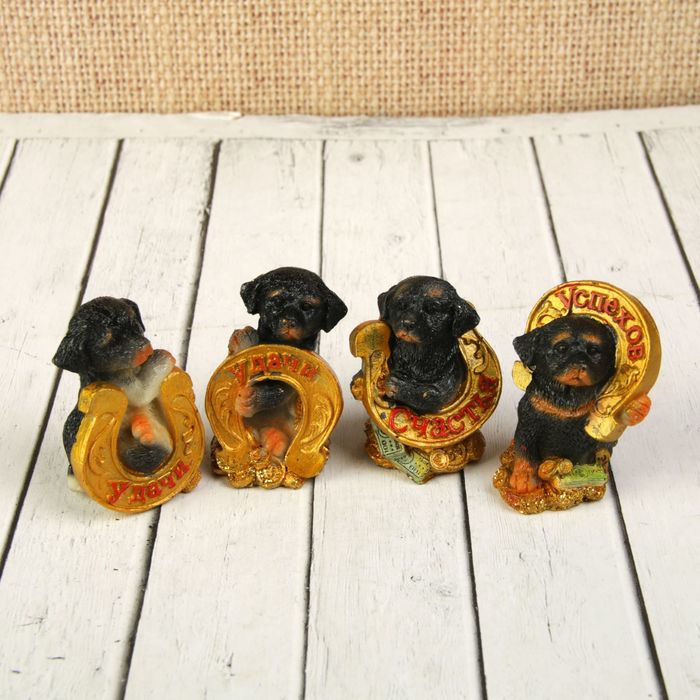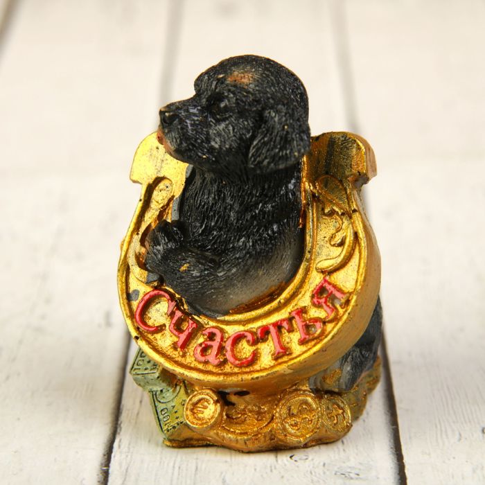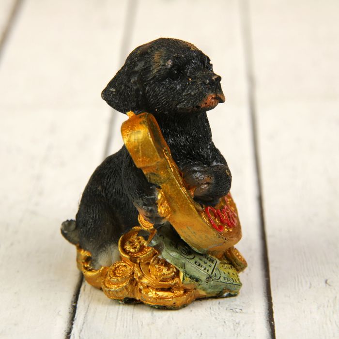 Сувенир полистоун "Ротвейлер на деньгах с золотой подковой" МИКС 6,2х4,3х3,5 см