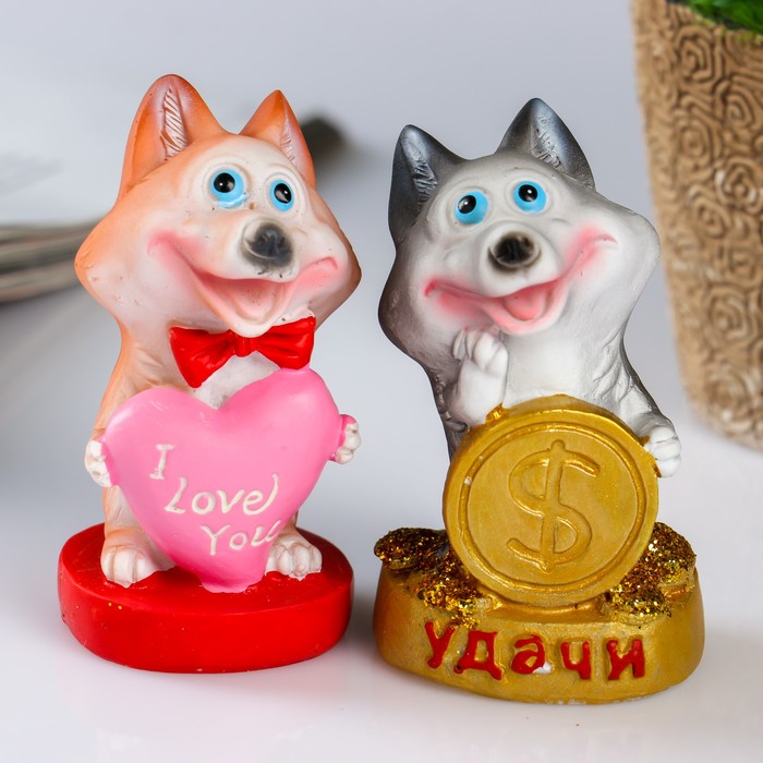 Сувенир полистоун "Щеночек лайки с сердцем/с монетой" МИКС 8х5,6х5,3 см
