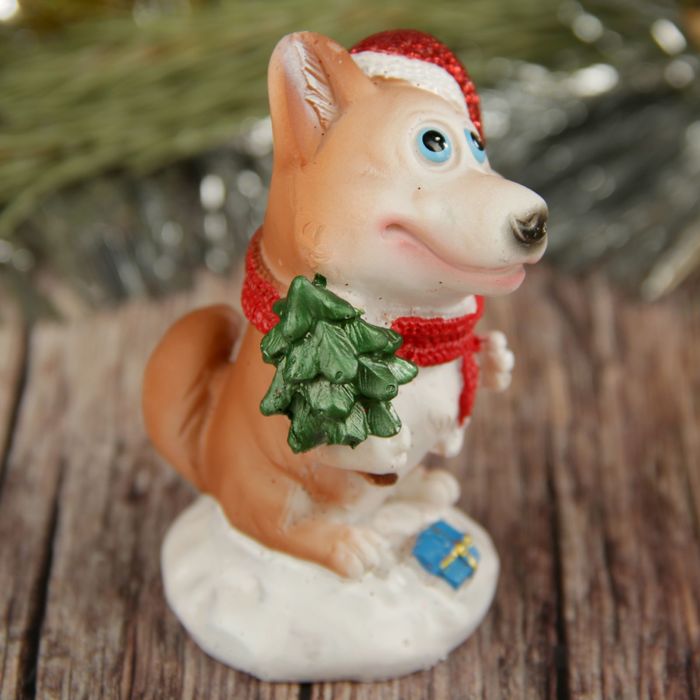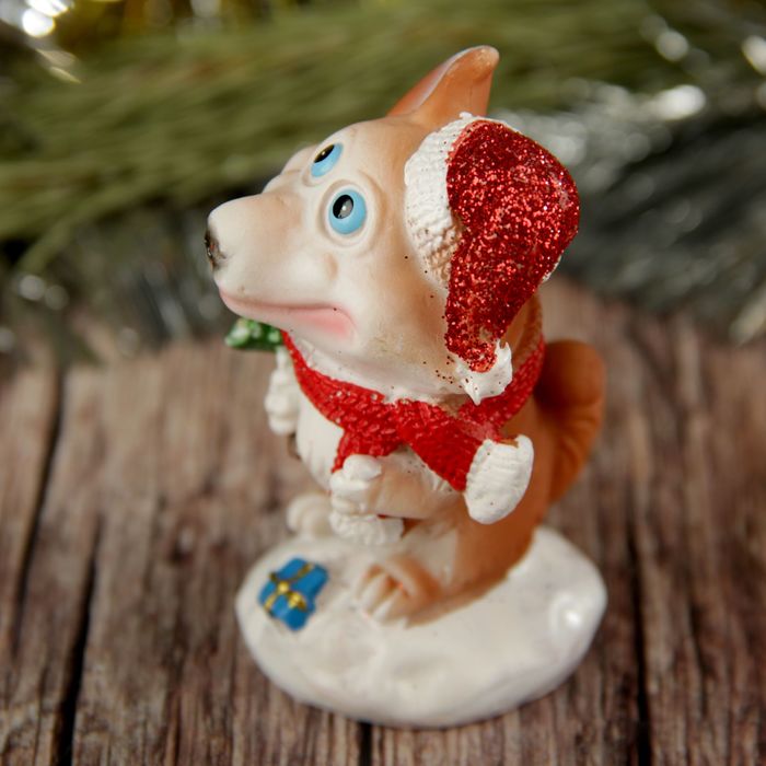 Сувенир полистоун "Щеночек в колпаке с ёлочкой" МИКС 8х5,6х5,3 см