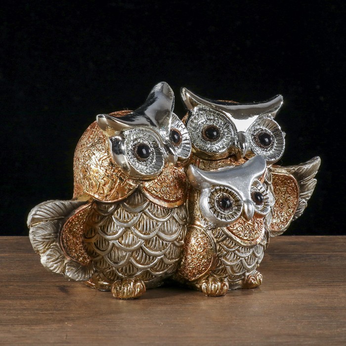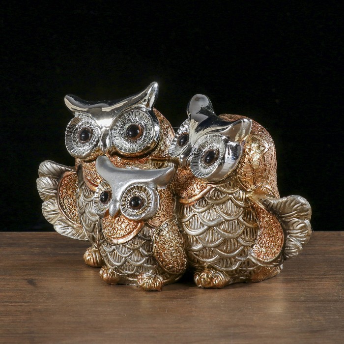 Сувенир полистоун "Семейство сов" золотые 10х21х9,5 см