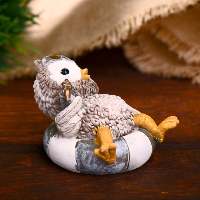 Сувенир полистоун "Серый совёнок на надувном круге" 5х8,7х6 см