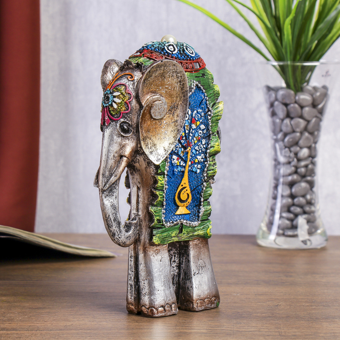 Хотите пожелать близким успеха и процветания? Вручите им фигурку слона! Ведь именно это благородное животное в странах Азии и Африки является символом благополучия и стабильности. Считается, что слон привлекает в дом положительную энергию. Поставьте его на подоконник, так, чтобы он смотрел на улицу. Сувенир полистоун "Слон с павлином на попоне" 20х12,5х6,5 см украсит собой окружающее пространство, добавив ему этнический колорит.