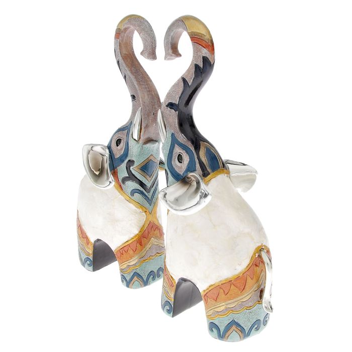 Хотите пожелать близким успеха и процветания? Вручите им фигурку слона! Ведь именно это благородное животное в странах Азии и Африки является символом благополучия и стабильности. Считается, что слон привлекает в дом положительную энергию. Поставьте его на подоконник, так, чтобы он смотрел на улицу. Сувенир полистоун "Слоны сине-белый жемчуг" набор 2 штуки 23,5х9,5х5,5 см украсит собой окружающее пространство, добавив ему этнический колорит.