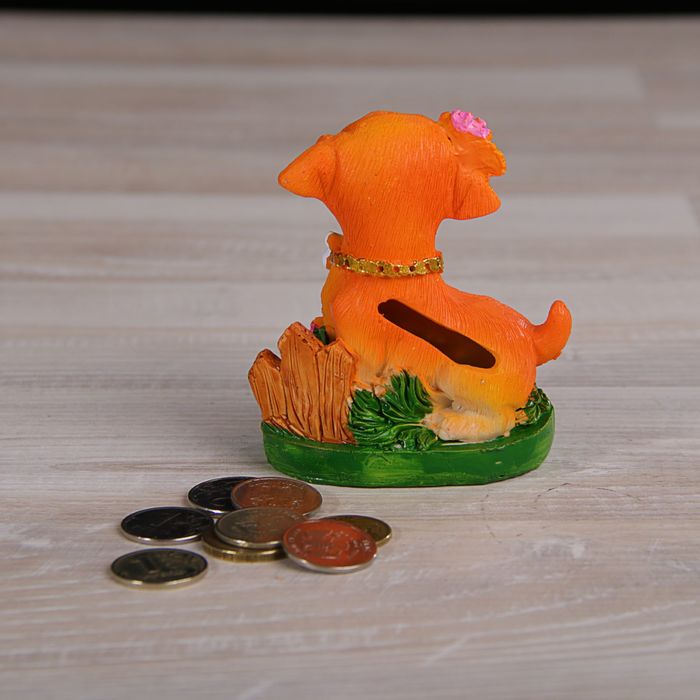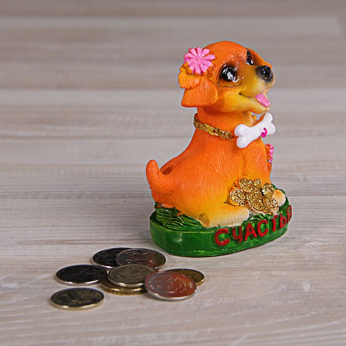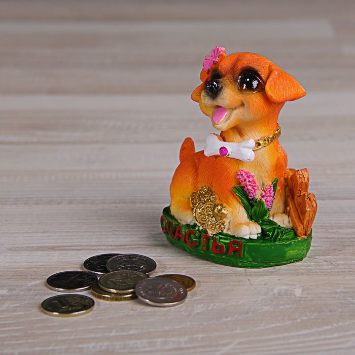 Сувенир полистоун "Собака на полянке с цветами и монетками" МИКС 9х7х5 см