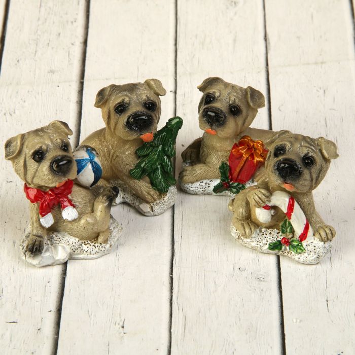 Сувенир полистоун "Собака с новогодней атрибутикой" МИКС 5,2х5,7х4 см