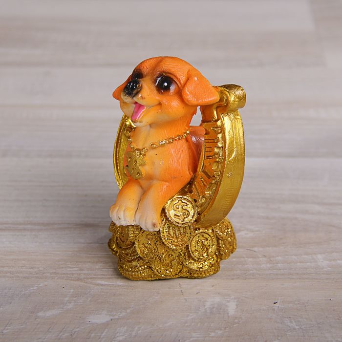 Сувенир полистоун "Собака с подковой, монетами и пожеланием" МИКС 8,5х5,5х6 см