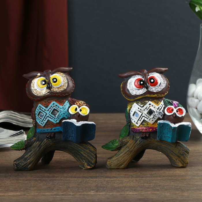 Сувенир полистоун "Сова и совёнок с книгой" цветная МИКС 10,5х9х5,5 см