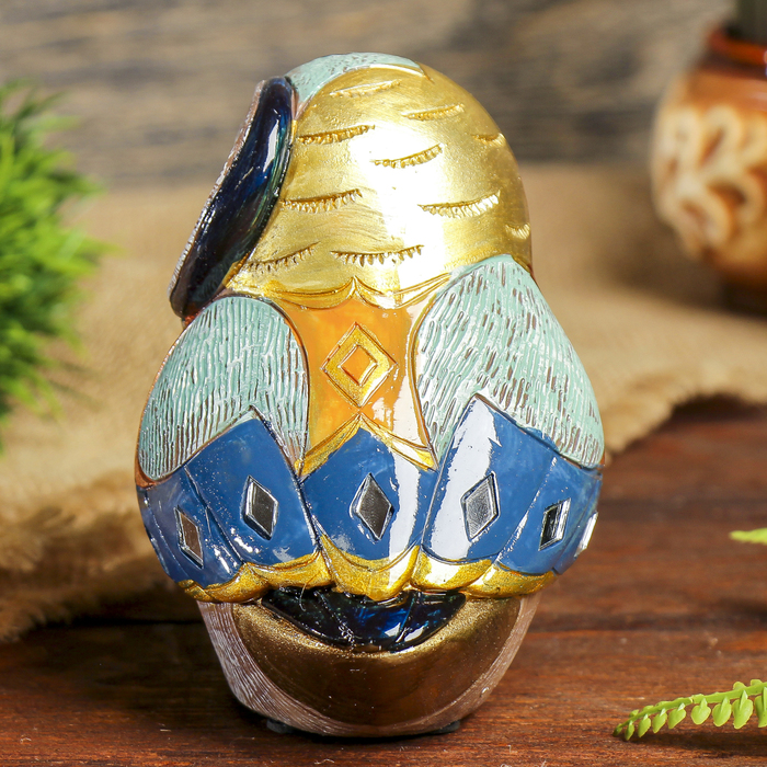 Сувенир полистоун "Сова расписная сине-золотая" 12х9х8,5 см