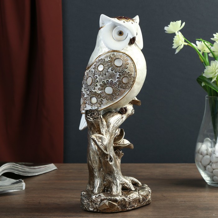 Сувенир полистоун "Сова жемчужная с цветами на крыльях на дереве" 27,3х11,7х8,5 см