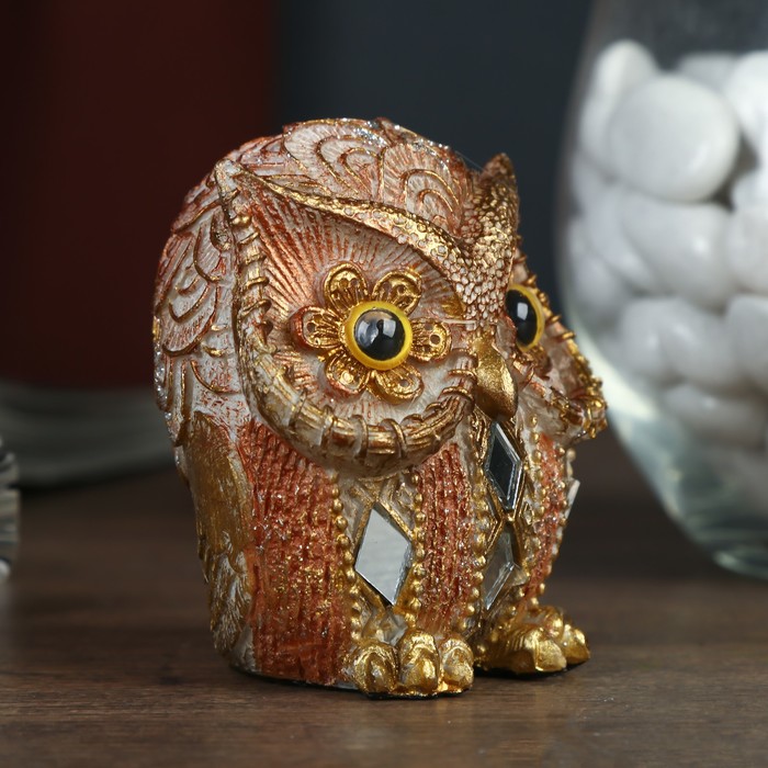 Сувенир полистоун "Совёнок в полосочку с зеркальными вставками" 6,5х5,5х4,5 см