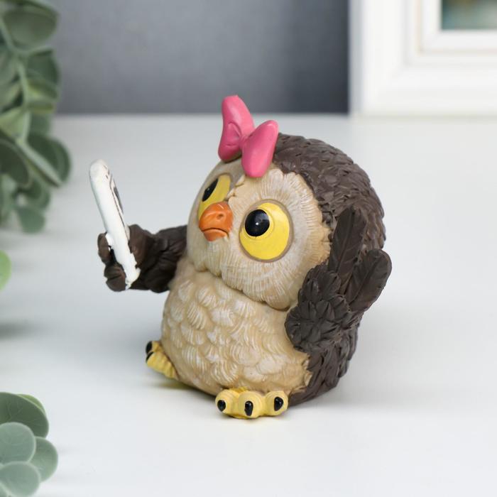 Сувенир полистоун "Совушка с мобильным" 8,8х10х7 см