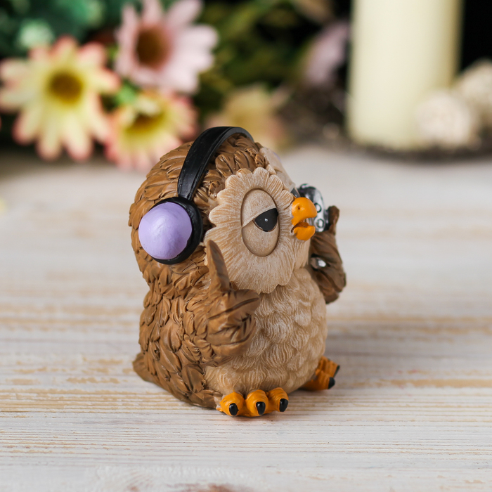 Сувенир полистоун "Совушка в наушниках и с плеером" 8,3х9х6,5 см