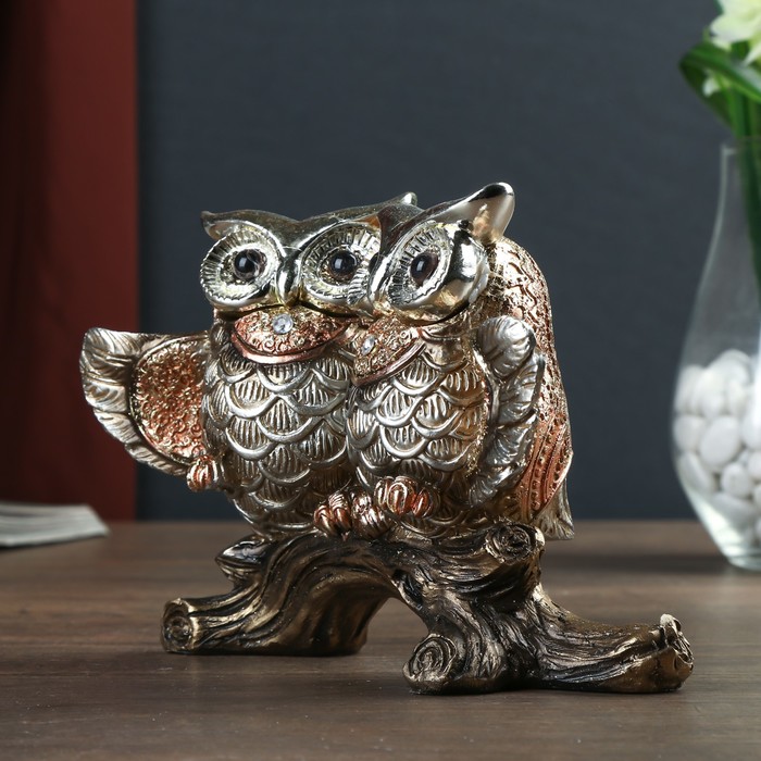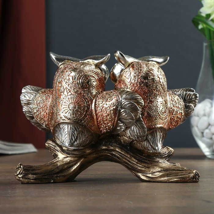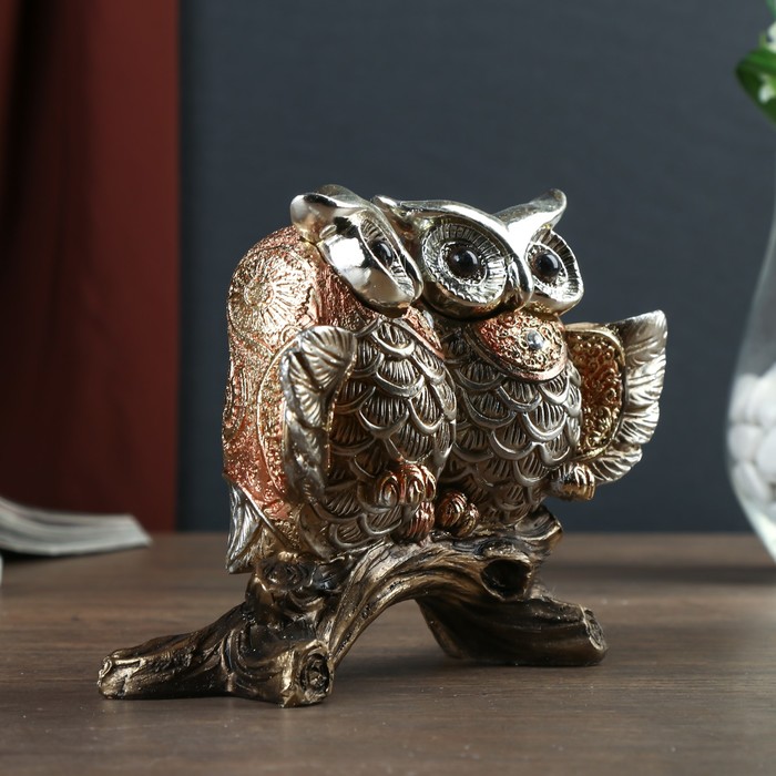 Сувенир полистоун "Совы-подружки" золотые 12х16,5х6,5 см