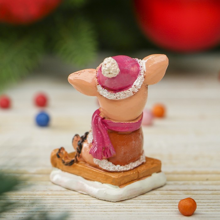 Сувенир полистоун "Свинка Лёля на санках - Радости" h=6 см