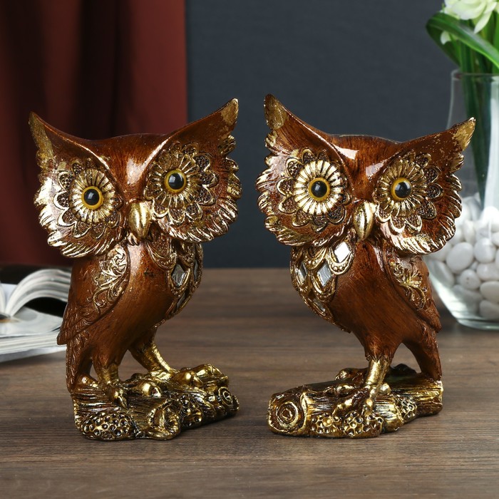 Сувенир полистоун зеркальные вставки "Филин Самсон" МИКС 15х9,5х7 см