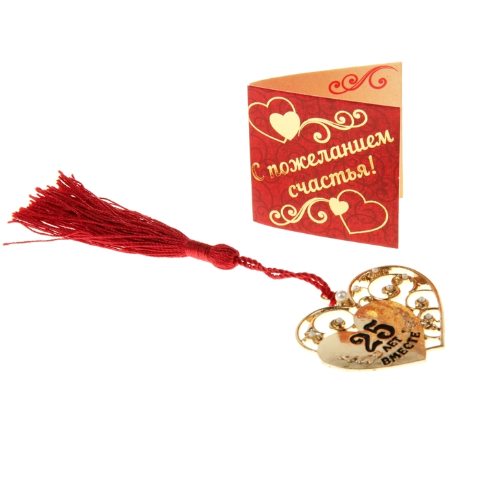 Сувенир сердце изготовлен из металла, на которую нанесена надпись. К сердцу прикреплена кисточка, которая придает изысканность сувениру.
