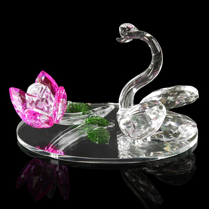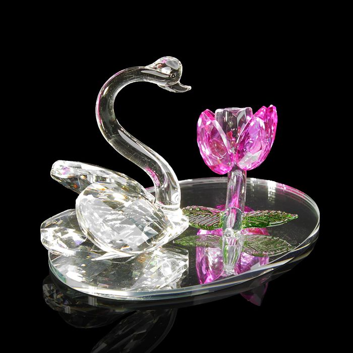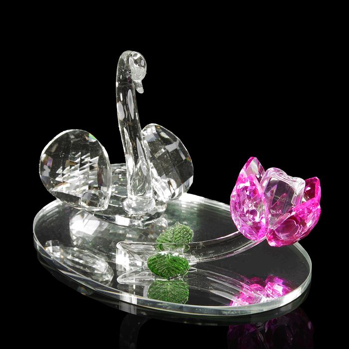 Сувенир стекло "Лебедь в пруду с розой" МИКС 7х11х7 см
