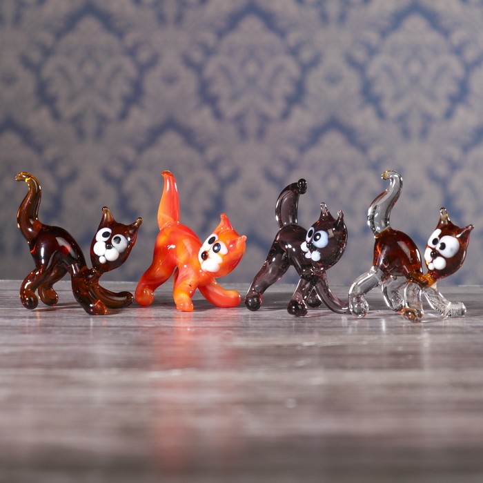 Сувенир стекло средняя фигурка "Кошка" 5х5х5 см МИКС