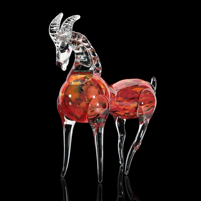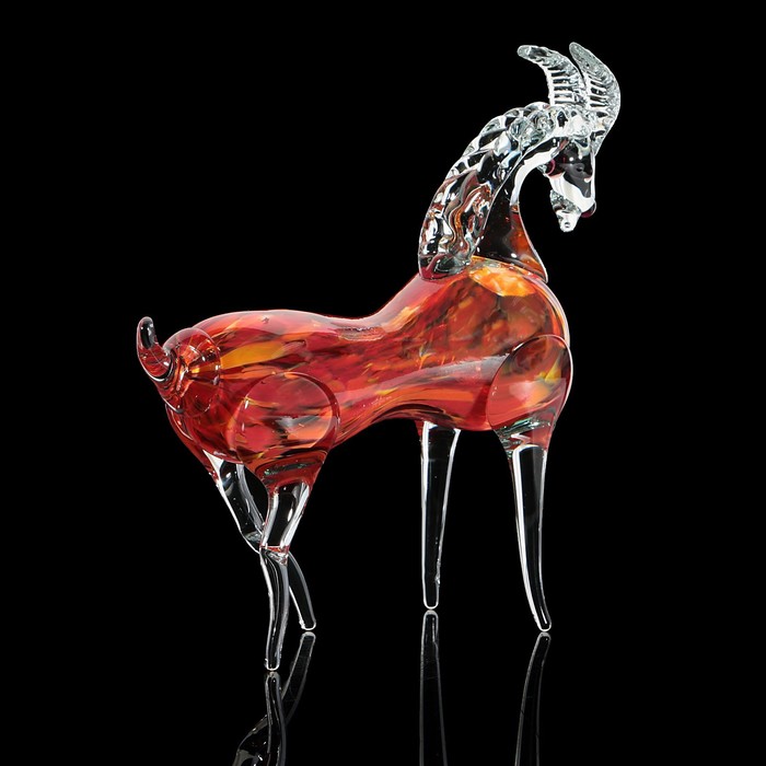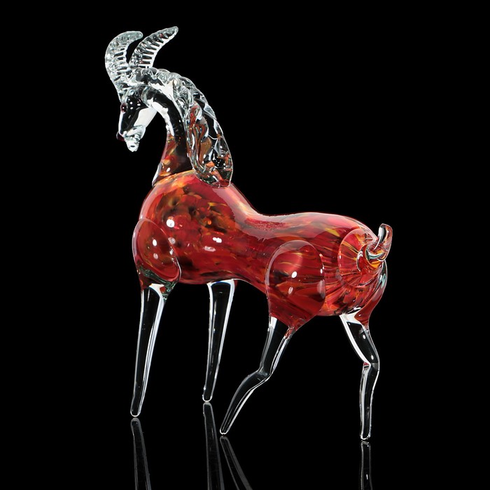 Сувенир стекло в стеклокрошку "Коза красный-марганец" 25х25х9 см