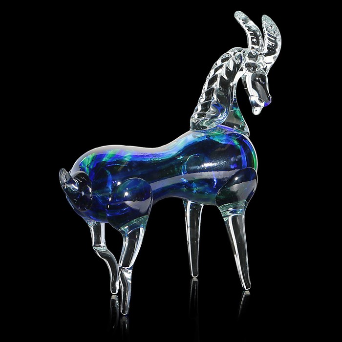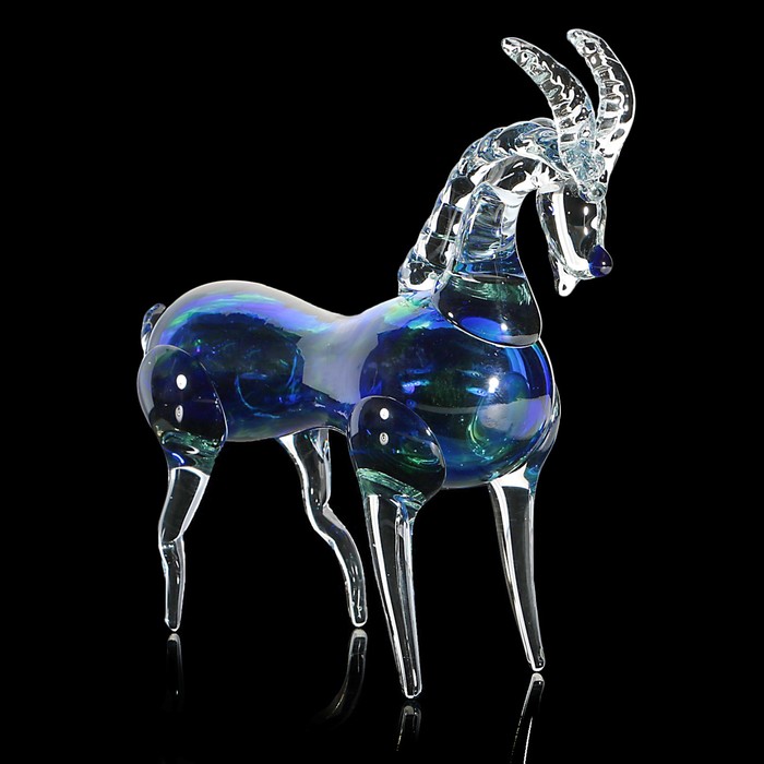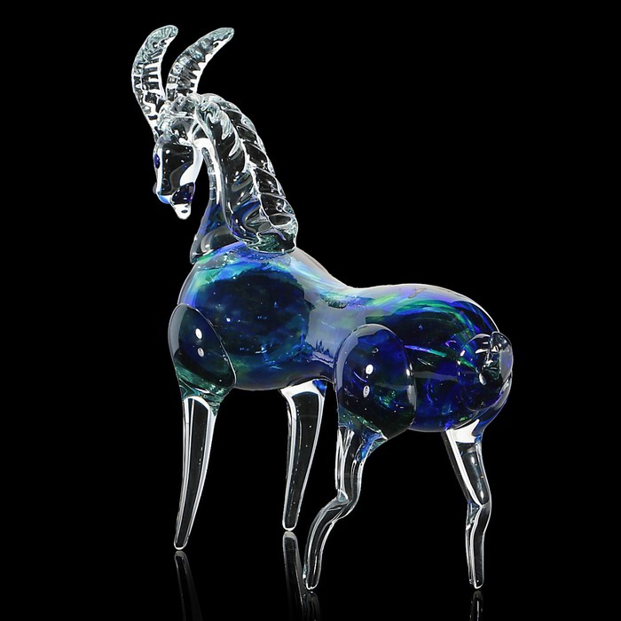 Сувенир стекло в стеклокрошку "Коза синий-зеленый" 25х25х9 см
