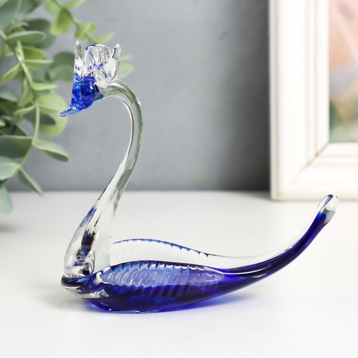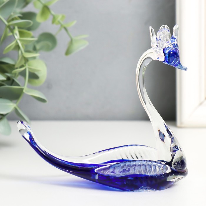 Сувенир стекло в стеклокрошку "Лебедь" синий 10х10х14 см