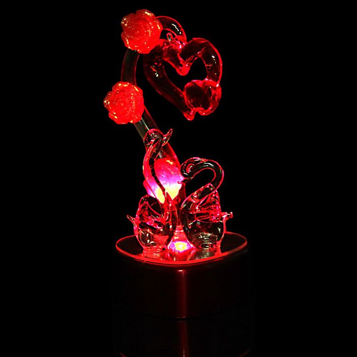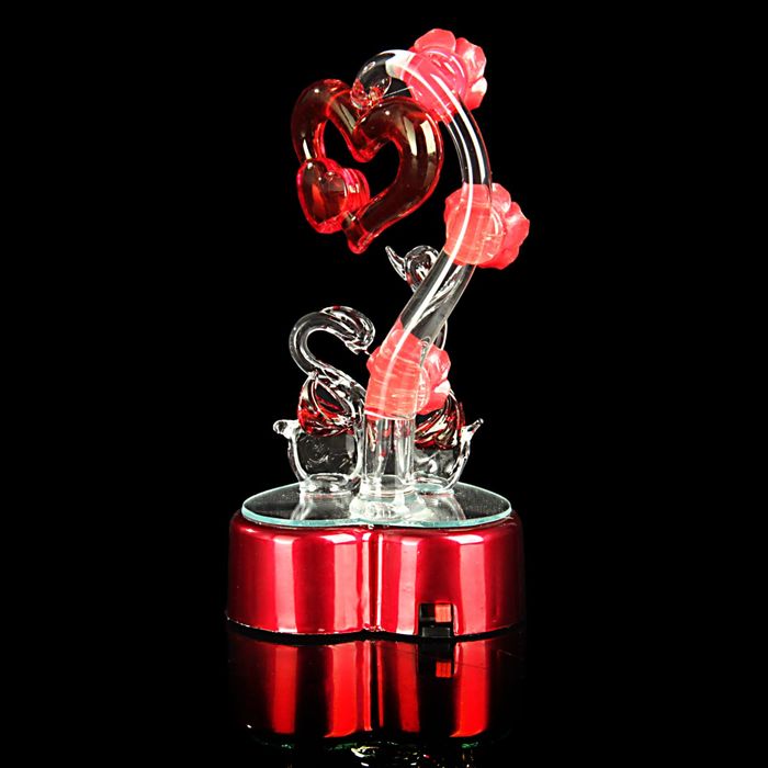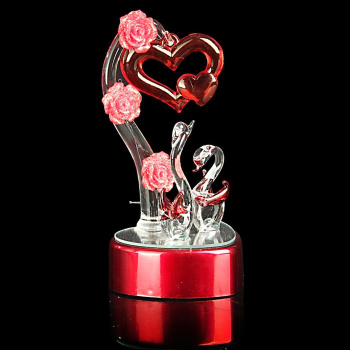 Что такое стеклянный сувенир? Подарок, который можно вручать к самым разным праздникам: дню рождения или Новому году, 8 Марта или другому важному дню, а можно и без особого повода – просто ради того, чтобы порадовать близкого человека. Воздушная и изящная стеклянная фигурка, кажущаяся невесомой, будто сделанной из воздуха, оживит окружающее пространство и станет выражением Вашего искреннего внимания по отношению к человеку, которому Вы ее вручите. Сувенир световой "Лебеди под сердцем на зеркальной подставке", МИКС – приятный сюрприз для близких людей.
