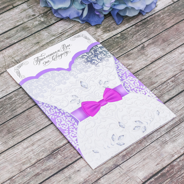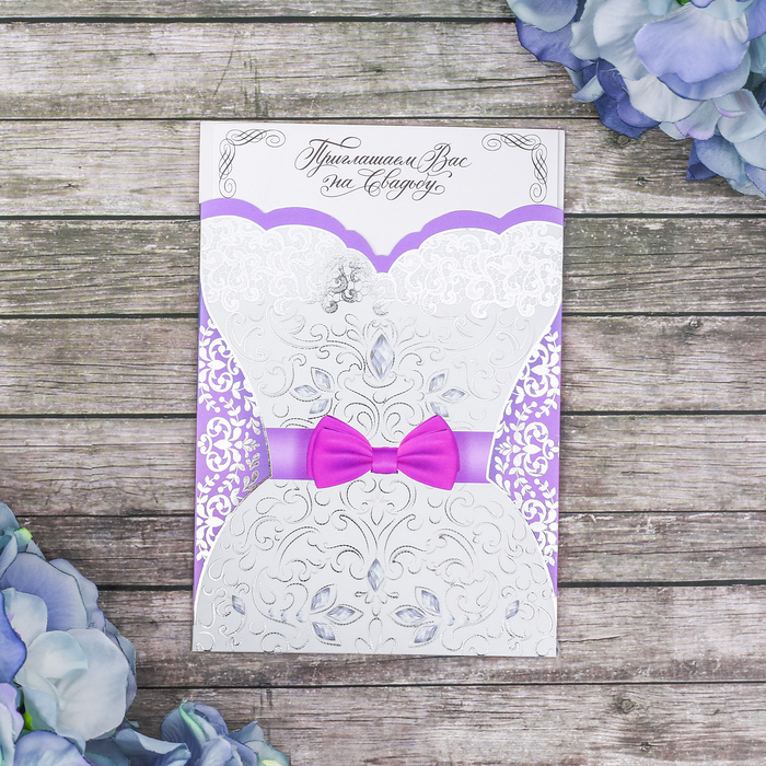 Свадебное приглашение "Платье-смокинг. Фиолетовый"