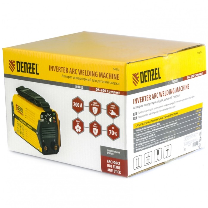 Сварочный инвертор Denzel DS-200 Compact, MMA, 200 А, ПВ 70%, диам.эл. 1,6-5 мм