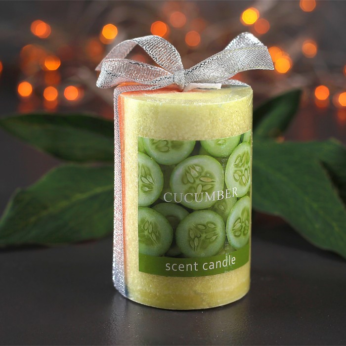 Свеча цилиндр, 5х7,5см, "Кристаллический узор", огурец