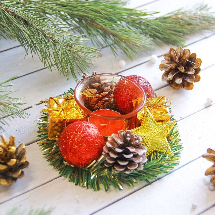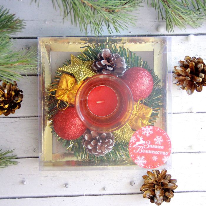 Свеча новогодняя "С шарами, шишками, подарками" d-13 см