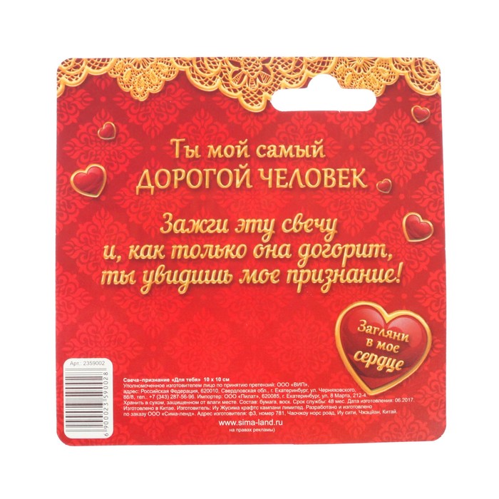Свеча признание "Для тебя" — это замечательный подарок своей второй половинке. В каждом доме ему найдётся место.