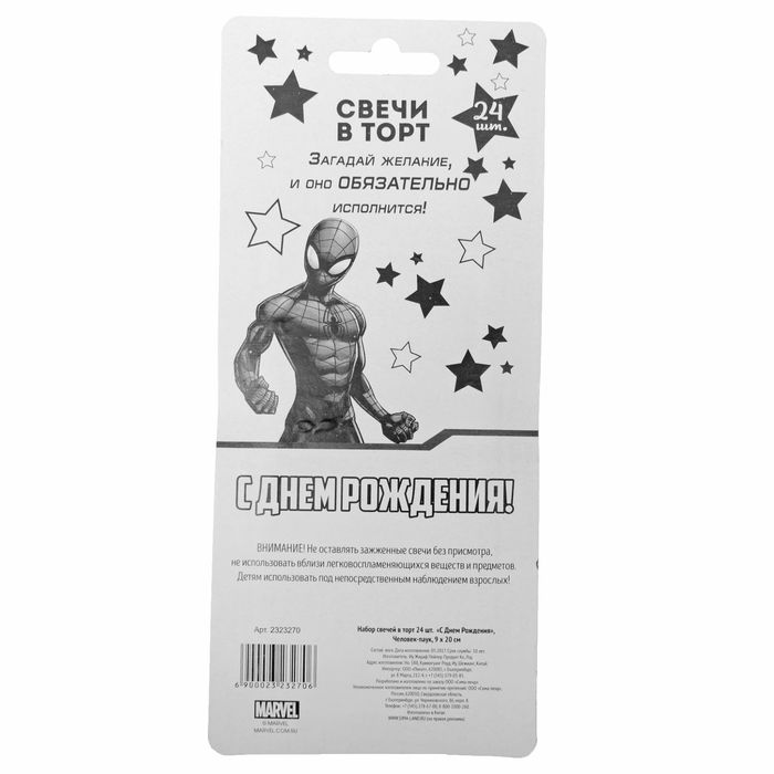 Свеча в торт 24 шт. "С Днем Рождения", Человек-паук