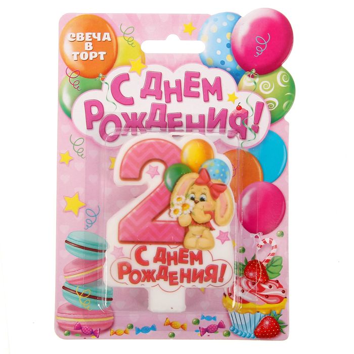 Свеча в торт цифра 2 для девочек "С Днем Рождения"