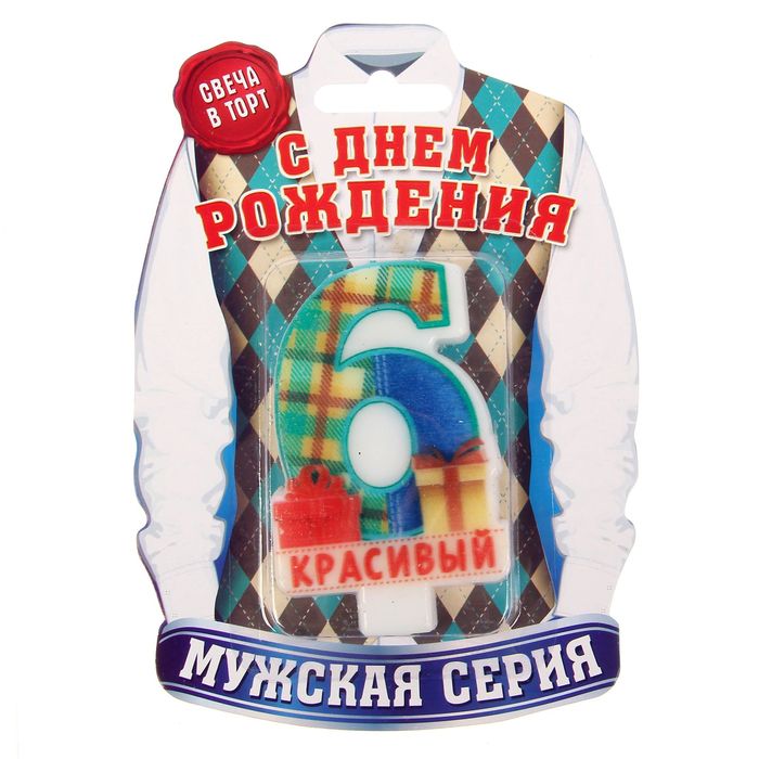 Свеча в торт цифра 6 "Красивый"