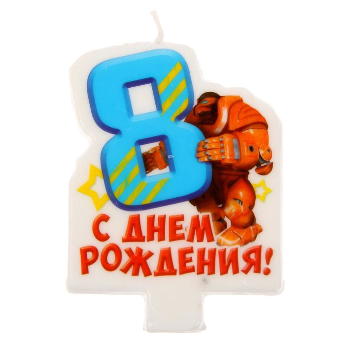 Свеча в торт цифра 8 для мальчиков "С Днем Рождения"