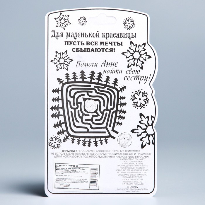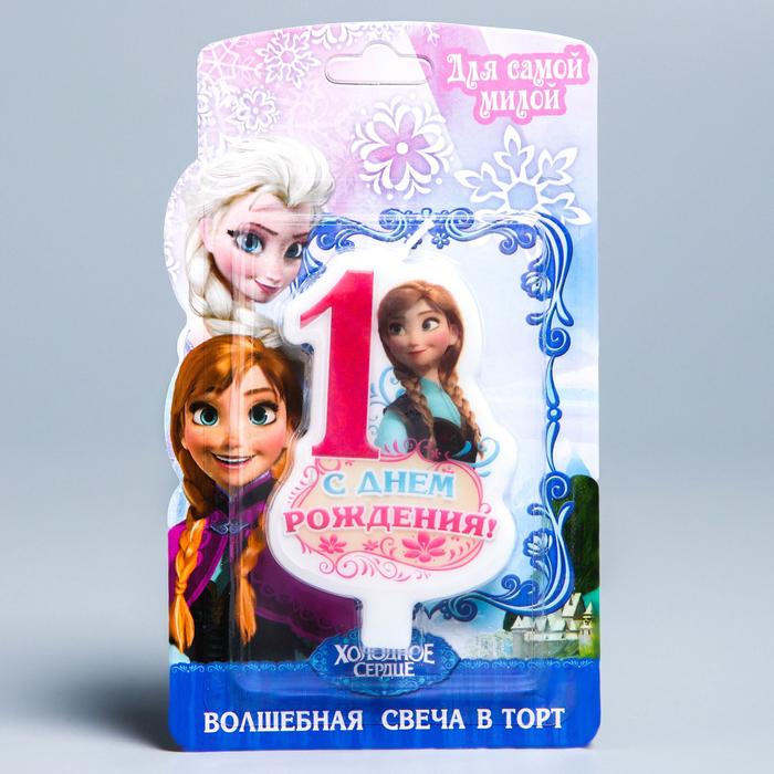 Свеча в торт Дисней "С днем рождения" цифра 1 Холодное сердце