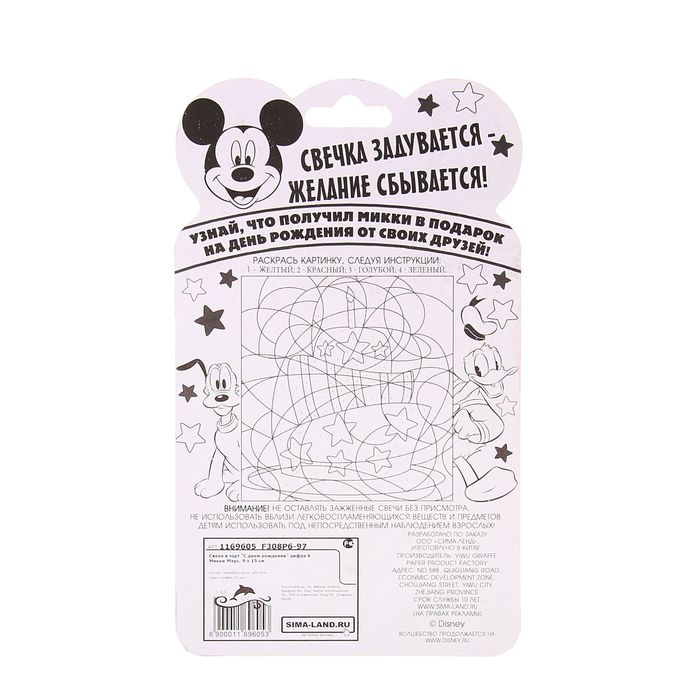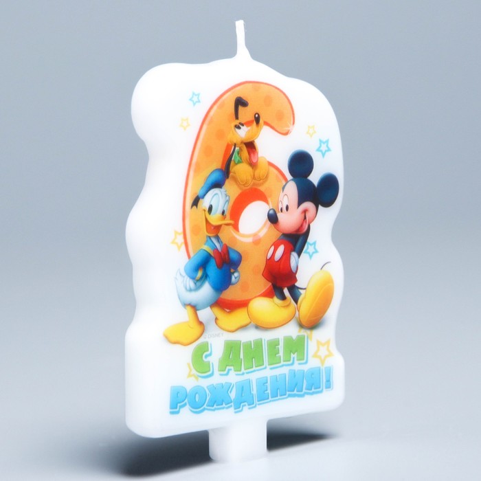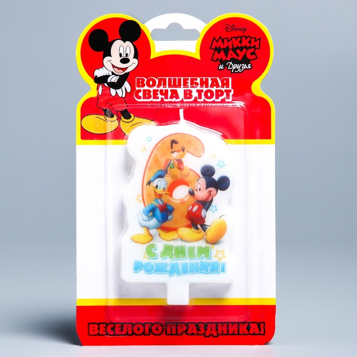 Свеча в торт Дисней "С днем рождения" цифра 6 Микки-Маус