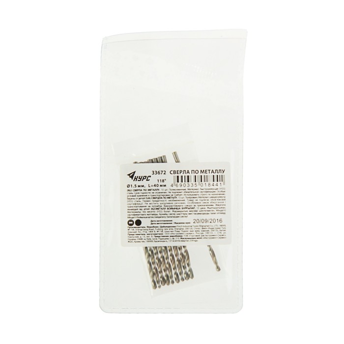 Сверла по металлу "КУРС", HSS, полированные, 1,5 x 40 мм, 10 шт.
