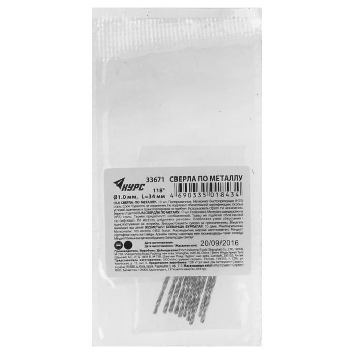 Сверла по металлу "КУРС", HSS, полированные, 1 x 34 мм, 10 шт.