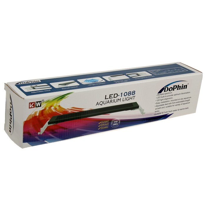 Светильник DOPHIN LED-1088 BIO-LUX, 35 - 43 см, 12.6 Вт, 24 white+3 blue поможет вам представить свой домашний водоём лучшим образом. Конструкция не требует дорогостоящего обслуживания, при необходимости устройство можно установить или снять за считанные секунды.