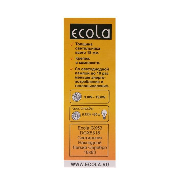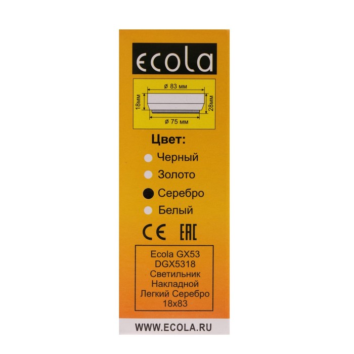 Светильник накладной Ecola, GX53, DGX53.18, 18x83 мм, цвет серебро