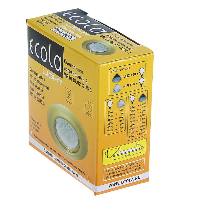 Светильник встраиваемый Ecola DL92, GU5.3, MR16, выпуклый, 30x80 мм, цвет перламутр. золото
