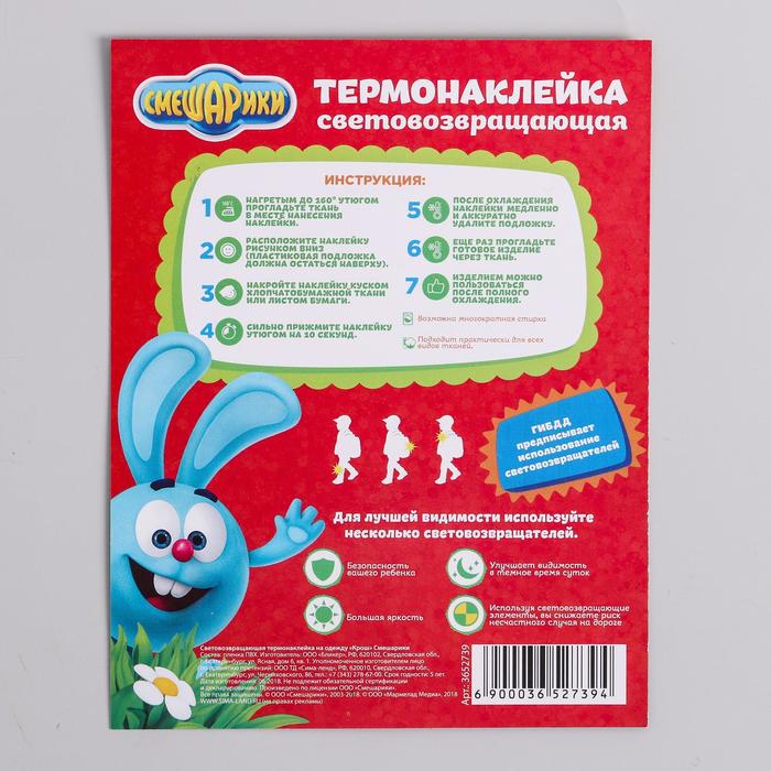 Светоотражающая термонаклейка на одежду СМЕШАРИКИ, "Крош"