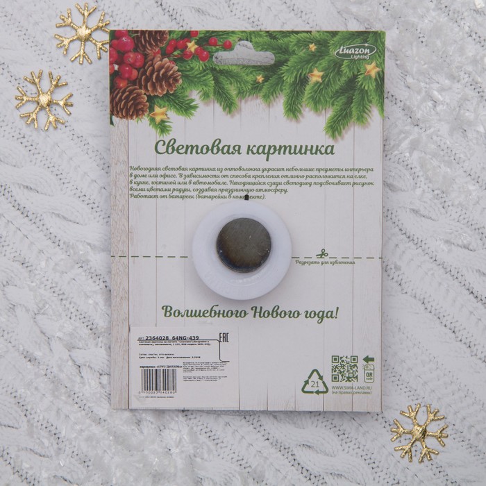 С помощью такой цветной картинки вы сможете поздравить близких с Новым годом, дополнить основной подарок или оформить квартиру и офис. Изделие порадует не только красочным изображением, но и своим свечением: огоньки всегда ассоциируются с праздником и создают рождественскую атмосферу. Пусть эта приятная мелочь подарит тёплые воспоминания.