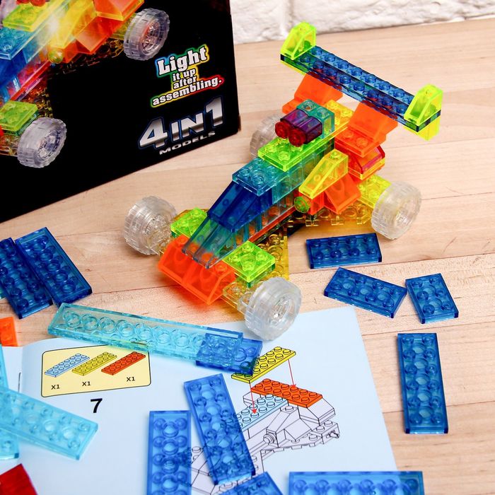 Светящийся конструктор «Гоночный автомобиль», 4 в 1, 74 детали