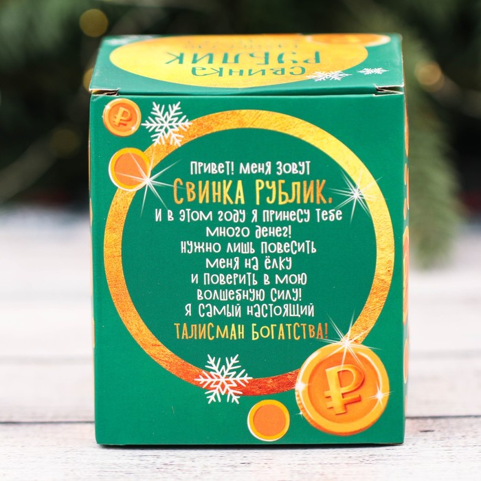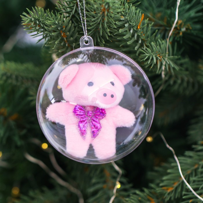 Свинка-талисман к деньгам в ёлочном шаре "Рублик", 8 см
