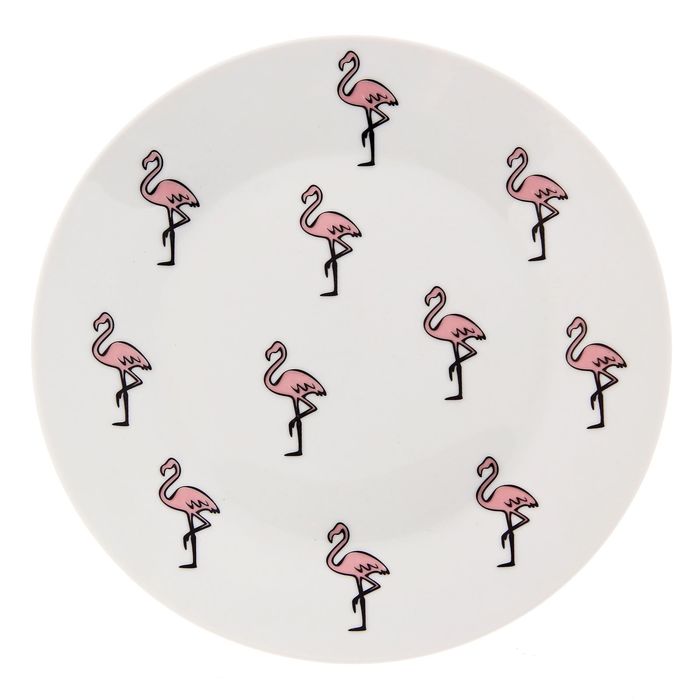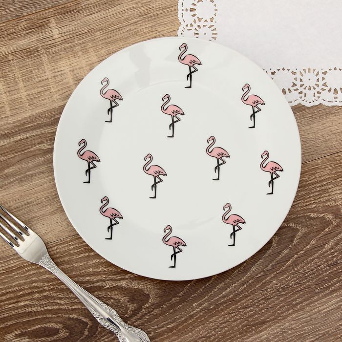 Тарелка 20 см "Розовый фламинго", с бортами
