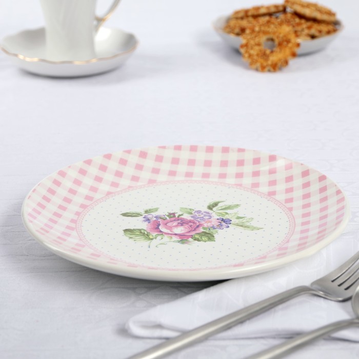 Тарелка 22 см "Кантри. Розовая клетка"