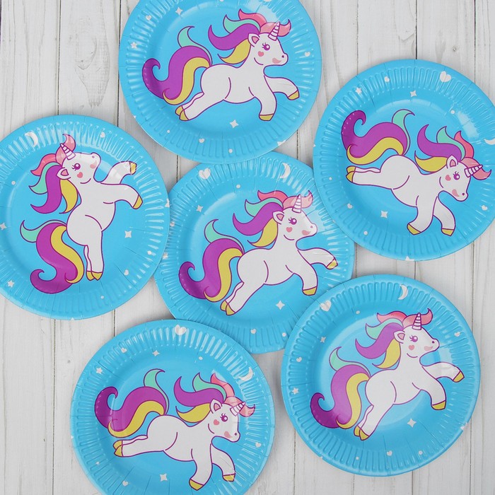 Тарелка бумажная "Единорог и звёзды" цвет розовый (набор 6 шт)