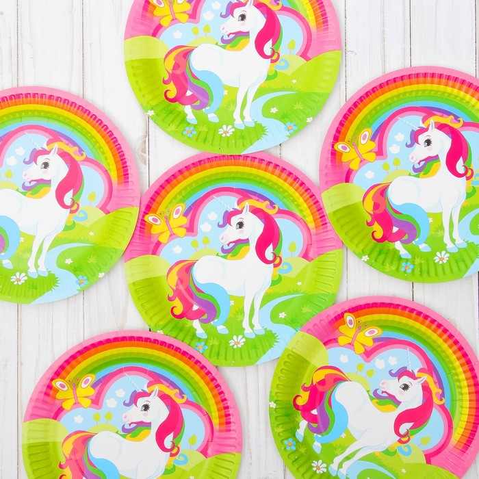 Тарелка бумажная "Единорог на полянке", (набор 6 шт)